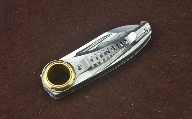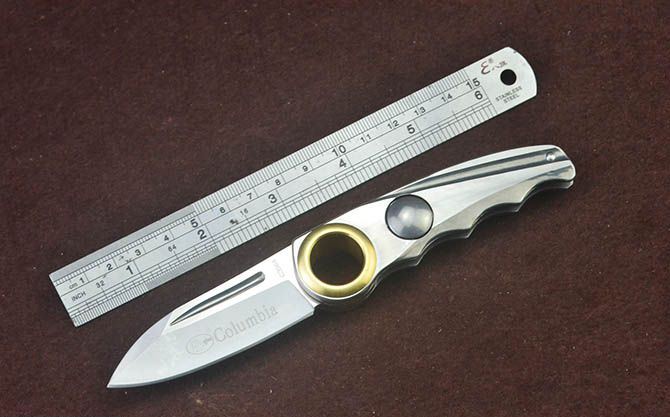 哥伦比亚狼C3984折刀 全 长:15.8cm 刃 长:6.5cm 柄 长:9.2cm 刃 宽:2.3cm 刃 厚:3mm 刃 材:3Cr13Mov 重 量:120g(含包装) 硬 度:56HRC 表 面:拉丝 柄 材:铜+全钢拉丝面 锁 型:柄面圆帽锁 包 装:彩盒 备 注:带腰夹