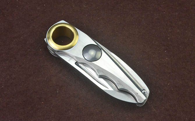 全 长:15.8cm 刃 长:6.5cm 柄 长:9.2cm 刃 宽:2.3cm 刃 厚:3mm 刃 材:3Cr13Mov 重 量:120g(含包装) 硬 度:56HRC 表 面:拉丝 柄 材:铜+全钢拉丝面 锁 型:柄面圆帽锁 包 装:彩盒 备 注:带腰夹