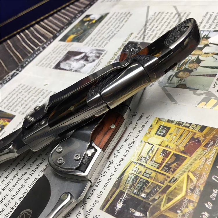 全 长:20.5cm 刃 长:9cm 柄 长:11.5cm 刃 宽:3cm 刃 厚:2.7mm 刃 材:3Cr13Mov 重 量:198g(含包装) 硬 度:56HRC 表 面:拉丝 柄 材:全钢镭射刻花+树脂 锁 型:安全锁 包 装:纸盒 备 注:带腰夹、带挂链吊牌