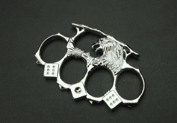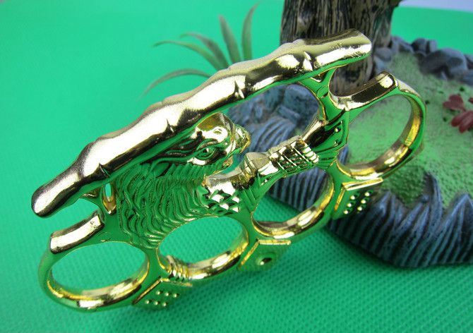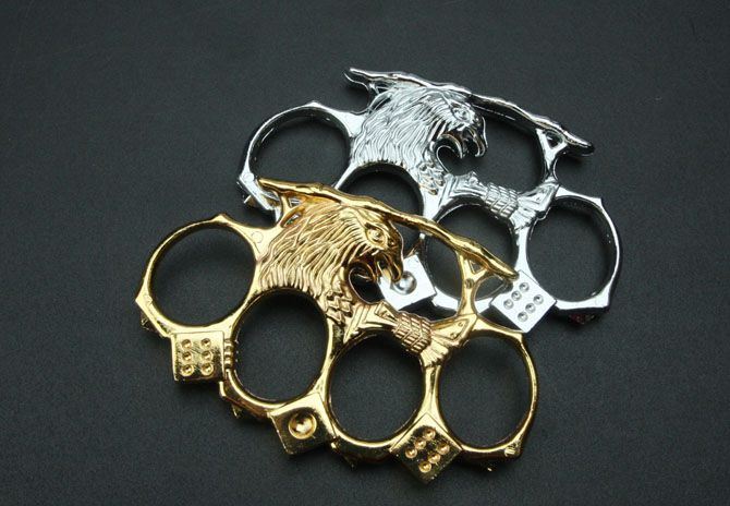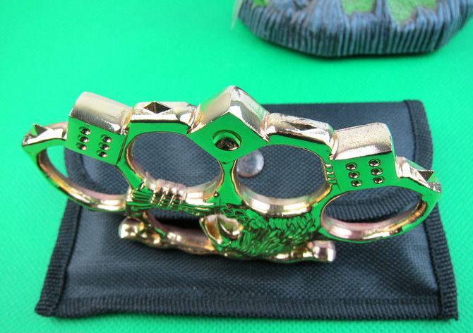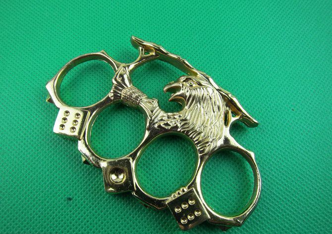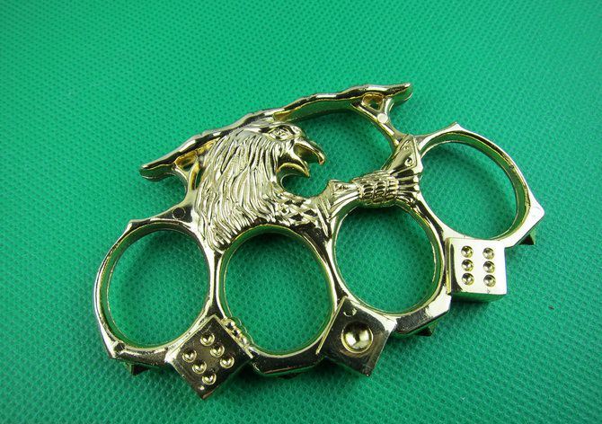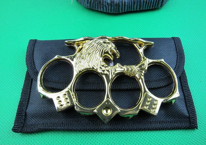 金鹰防身拳套(金色/白色) 宽度:11.2 高度:7.2 厚度: 1.05 单孔内径:3.1X2.4 材料:精铸铝 表面处理:金色 重量:170克 配尼龙袋,可别在腰带上 购买时请注明具体是要什么颜色的。