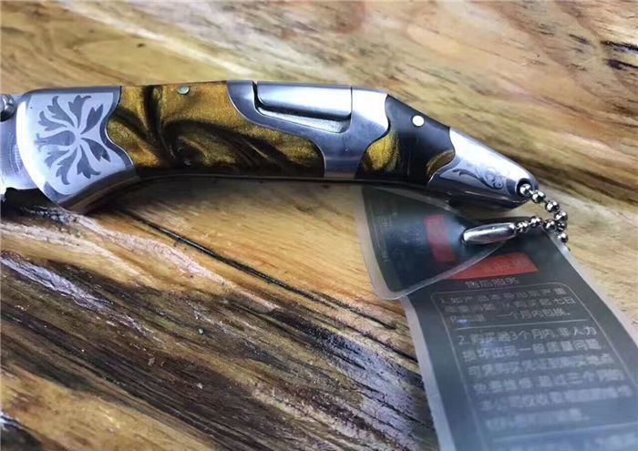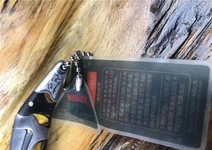 哥伦比亚狼C3948折刀 全 长:16cm 刃 长:6.5cm 柄 长:9.3cm 刃 宽:2cm 刃 厚:2.2mm 刃 材:3Cr13Mov 重 量:96g(含包装) 硬 度:56HRC 表 面:拉丝 柄 材:全钢镭射刻花+树脂 锁 型:安全锁 包 装:纸盒 备 注:带腰夹、带挂链吊牌