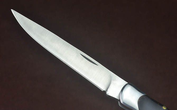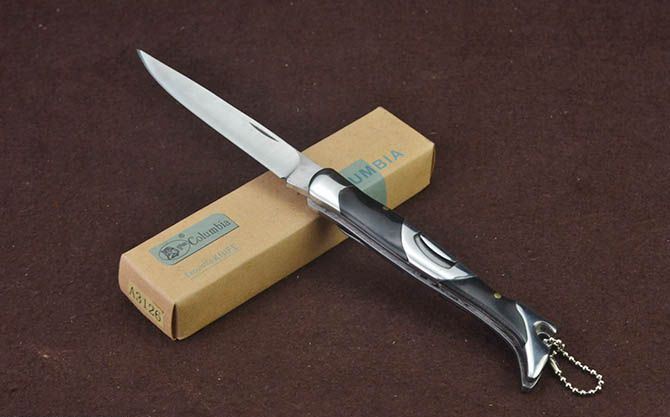 哥伦比亚狼A3126折刀 全 长:22.3cm 刃 长:9.5cm 柄 长:12cm 刃 宽:1.6cm 刃 厚:2.8mm 刃 材:3Cr13Mov 重 量:115g(含包装) 硬 度:56HRC 表 面:拉丝 柄 材:全钢+树脂 锁 型:安全锁 包 装:纸盒 备 注:带腰夹