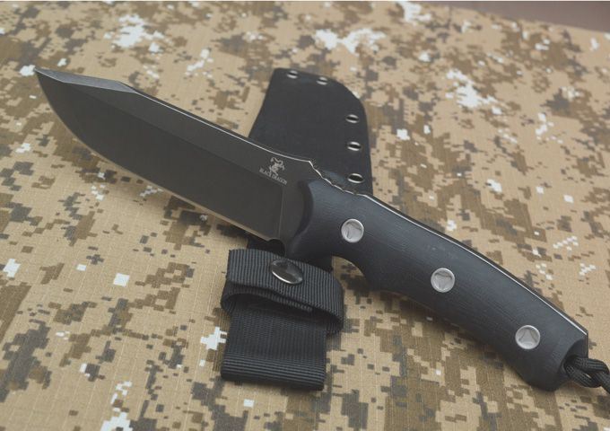 黑龙雷豹战术小直刀 全长:280MM 刃长:140MM 刃宽:38MM 刃厚:6MM 刃面打磨:数控V磨 刃面处理:沧桑石洗 热 处 理:真空油淬热处理 硬度: 58-60HRC 刃材:DC53钢 柄材:黑色G10 刀鞘:Kydex 鞘 包装:黑色礼品盒 刀重:约400G 总重:约650G(包括黑色礼品盒等)