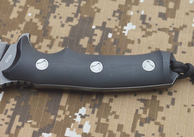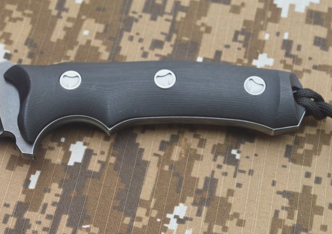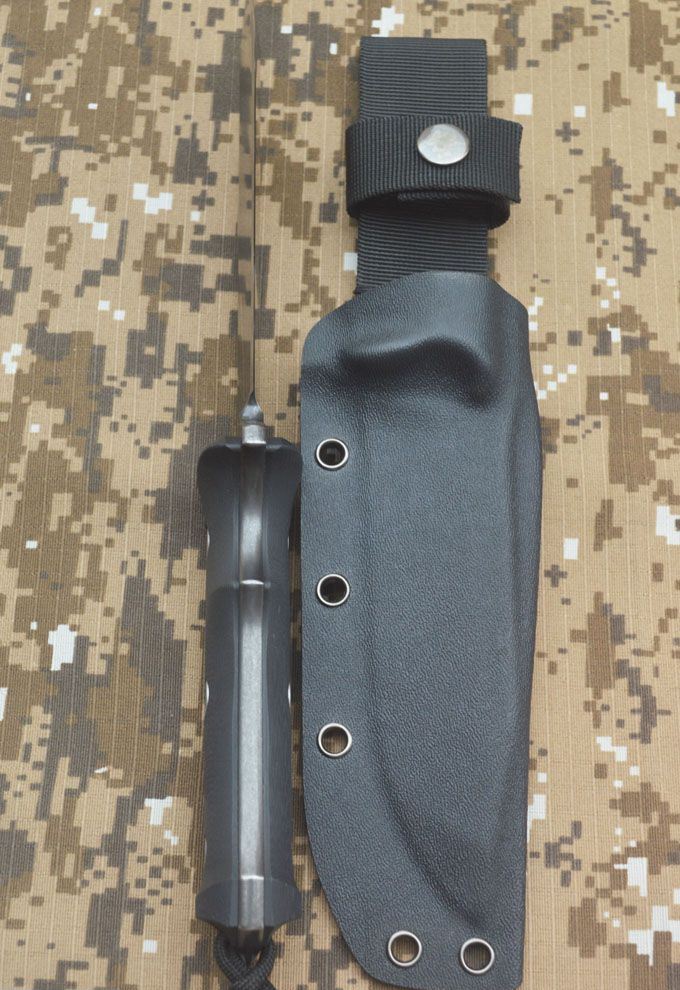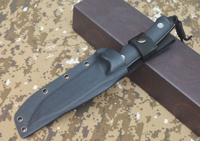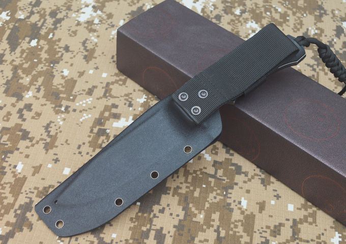 全长:280MM 刃长:140MM 刃宽:38MM 刃厚:6MM 刃面打磨:数控V磨 刃面处理:沧桑石洗 热 处 理:真空油淬热处理 硬度: 58-60HRC 刃材:DC53钢 柄材:黑色G10 刀鞘:Kydex 鞘 包装:黑色礼品盒 刀重:约400G 总重:约650G(包括黑色礼品盒等)