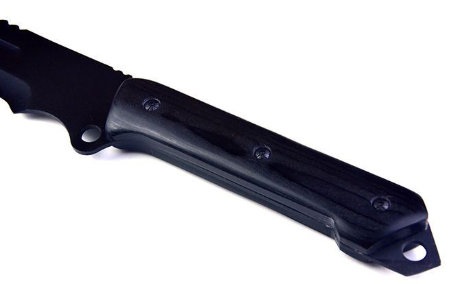 僵尸海豚砍刀 全长;63.5cm 刃长:40.5cm 柄长:17.8cm 刃宽:6.5cm 刃厚:3.9cm 刃材:440 刀柄:黑木 表面:黑氧化 重量:975G(带刀套) 配件:尼龙套+黑色纸盒