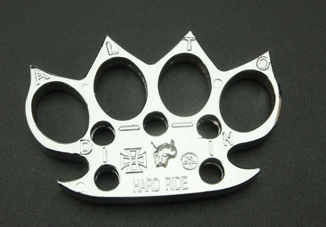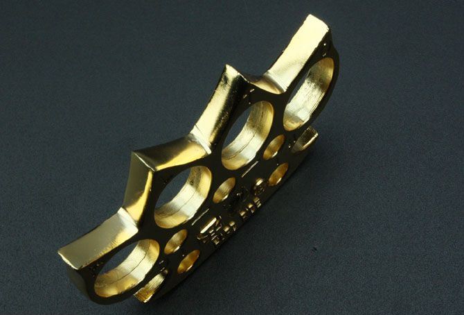 牛头拳套(金/白/黑) 全长:11cm 刃厚:10mm 材质:铸铁 净重:220克 表面处理:电镀白色和金色和黑色 购买时请注明具体的产品颜色。