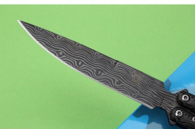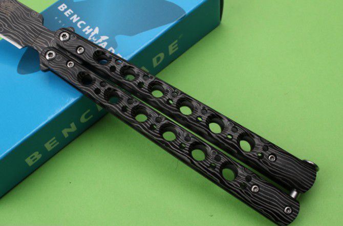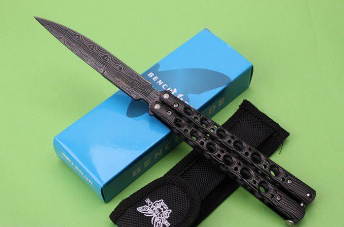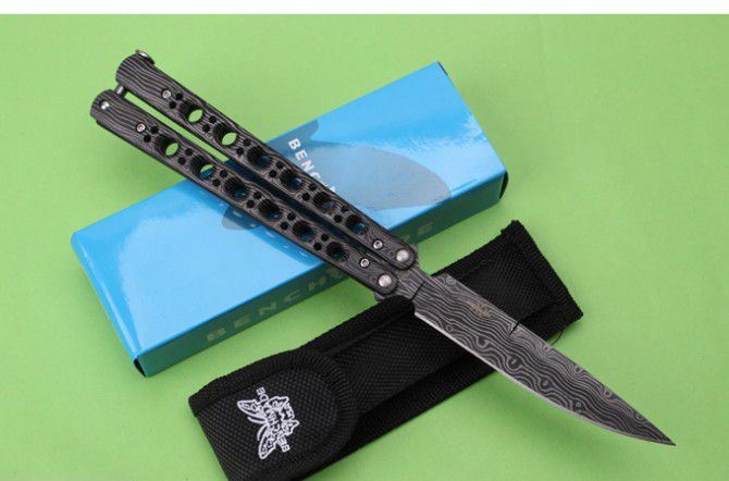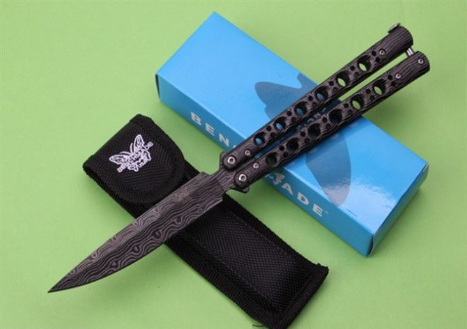 蝴蝶C62条纹甩刀 全 长:244mm 刃 长:100mm 柄 长:133mm 刃 宽:18mm 刃 厚:2.8mm 刃 材:3Cr13Mov 重 量:171g(含包装) 硬 度:55HRC 表 面:腐蚀 柄 材:钢柄 锁 型:甩刀 其 他:配彩盒和尼龙套