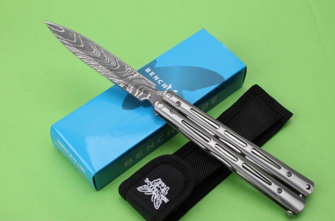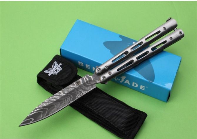 JL28蝴蝶甩刀 全 长:242mm 刃 长:100mm 柄 长:133mm 刃 宽:18mm 刃 厚:2.6mm 刃 材:3Cr13Mo 净 重:150克 重 量:213g(含包装) 硬 度:55HRC 表 面:腐蚀 柄 材:钢柄 其 他:配彩盒和尼龙套