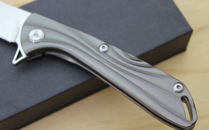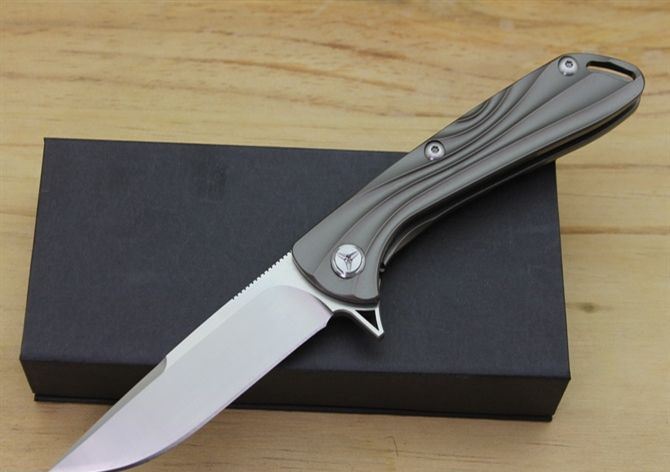 最新的拔手钉快开方式,开合更加顺畅,全钛刀柄,;刀片采用9Cr18Mo材料,全手工打磨,线条流畅;最高要求的精准的外六角止位钉,更显工艺高超;内嵚式合金锁位片,使刀柄表面光滑,给人最美观感!