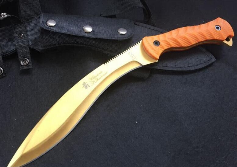 松田菊男钛金版瘦身狗腿 全长: 38.8CM 刃长: 24.5CM 刃材: 7Cr17 硬度: 60HRC 刃厚: 0.63CM 刃宽: 4.3CM (最宽处) 柄长: 14CM 柄材: G10 刀鞘: 尼龙套