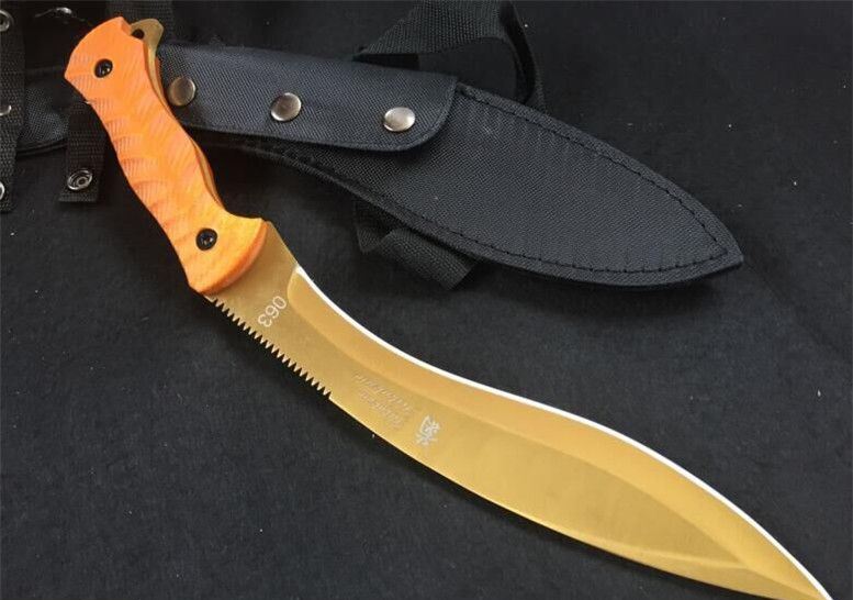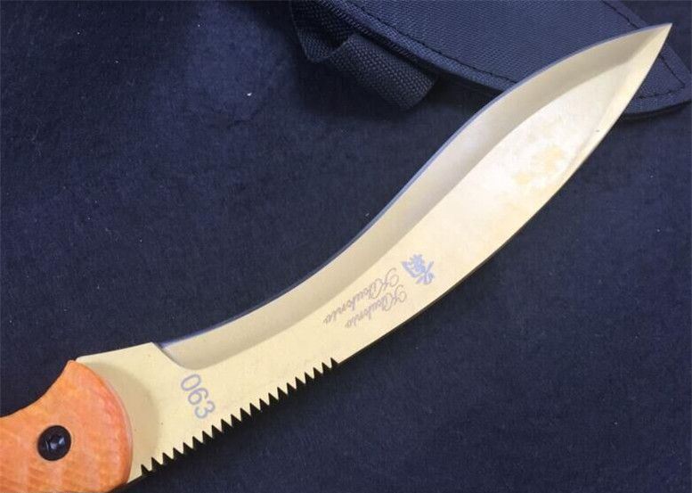 全长: 38.8CM 刃长: 24.5CM 刃材: 7Cr17 硬度: 60HRC 刃厚: 0.63CM 刃宽: 4.3CM (最宽处) 柄长: 14CM 柄材: G10 刀鞘: 尼龙套