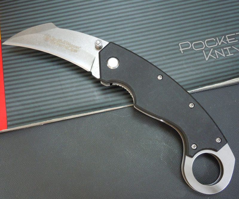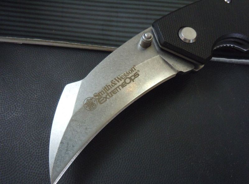 史密斯CK33爪刀(石洗) 全长:20CM 刃长:8.5CM 刃厚:0.3CM 柄长:13.5(cm) 刃材料:不锈钢 柄材料:钢框架+G-10 表面:石洗表面 重量:190克
