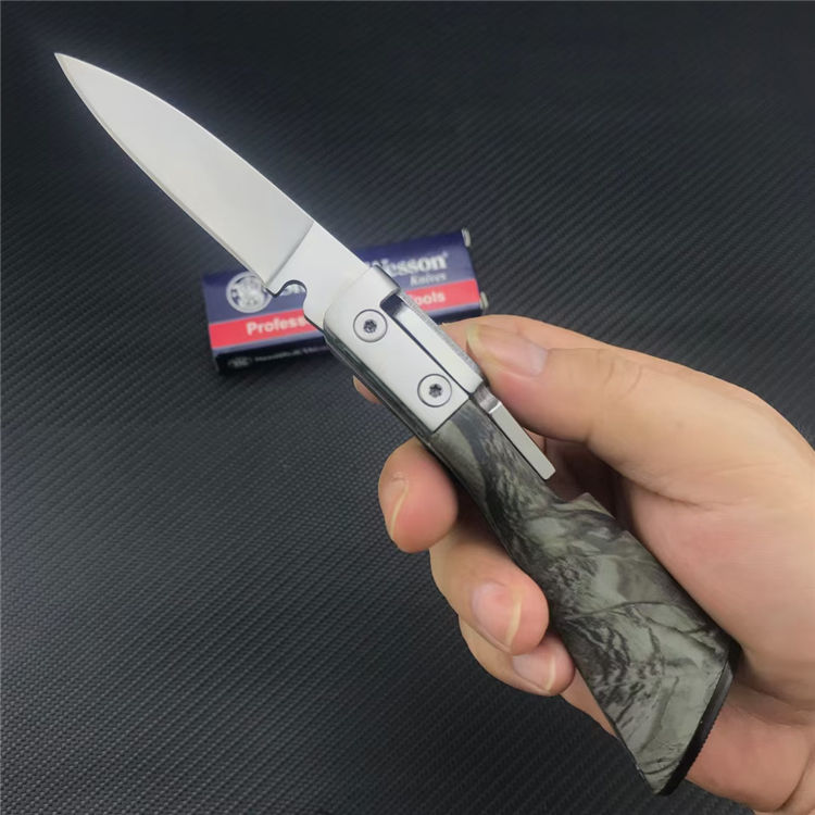 全 长:20.5cm 刃 长:7.3cm 柄 长:12cm 刃 宽:2cm 刃 厚:2.8mm 刃 材:3Cr13Mov 重 量:91g(含包装) 硬 度:56HRC 表 面:砂光 柄 材:钢头+迷彩披覆 锁 型:安全锁 包 装:彩盒+说明书