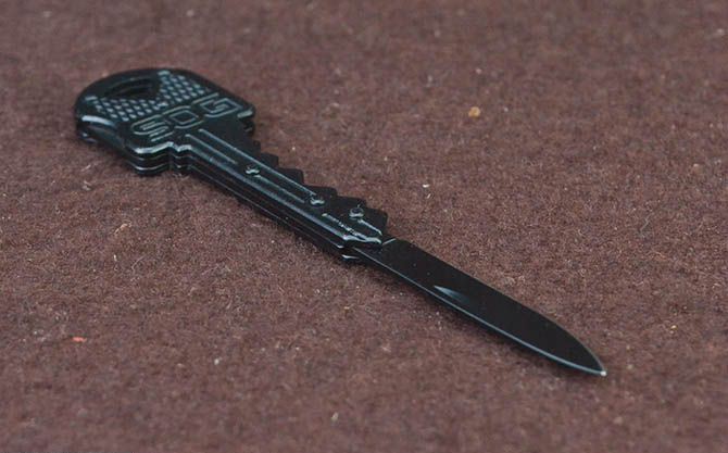 SOG黑钥匙小折刀 全 长:10.5cm 刃 长:4cm 柄 长:6.5cm 刃 宽:0.8cm 刃 厚:1.2mm 刃 材:420 重 量:31g(含包装) 硬 度:52HRC 表 面:发黑 柄 材:钢 锁 闭:背锁 包 装:吸泡包装