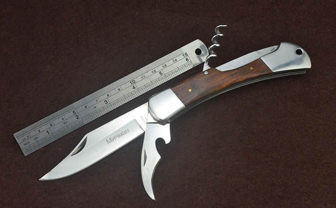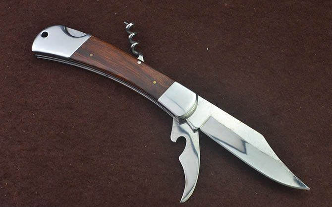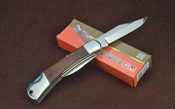 苍狼三开折刀 全 长:23cm 刃 长:8.5cm 柄 长:13.5cm 刃 宽:2.9cm 刃 厚:2.4mm 刃 材:3Cr13Mov 重 量:242g(含包装) 硬 度:56HRC 表 面:镜光 柄 材:双钢头+木片 锁 型:背锁 包 装:尼龙套、彩盒