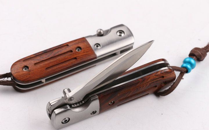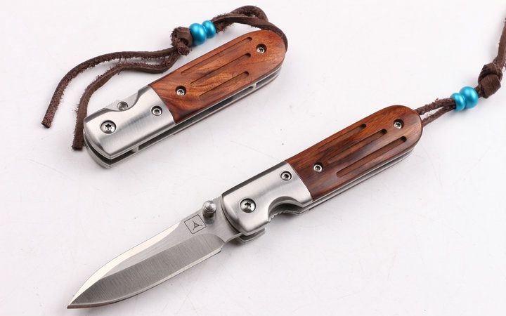 小卫士硬箭折刀 全 长:152mm 刃 长:65mm 柄 长:85mm 刃 宽:18mm 刃 厚:2.8mm 刃 材:7CR13 重 量:100g (含包装物) 硬 度:57HRC 表 面:精细沙光 柄 材:手柄全钢+红檀木片 锁 型:线锁 结 构:线锁结构 其 他:彩盒