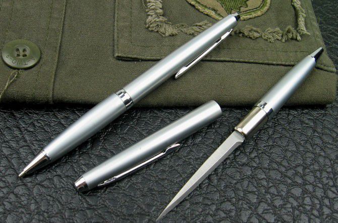 002多功能圆珠笔刀(银色)全刃 非常实用的时尚礼品:多功能刀笔. 功能一:小刀(女子防身) 功能二:开信刀 功能三:圆珠笔 全长:14CM 净重:17.4克 笔杆材料:铜