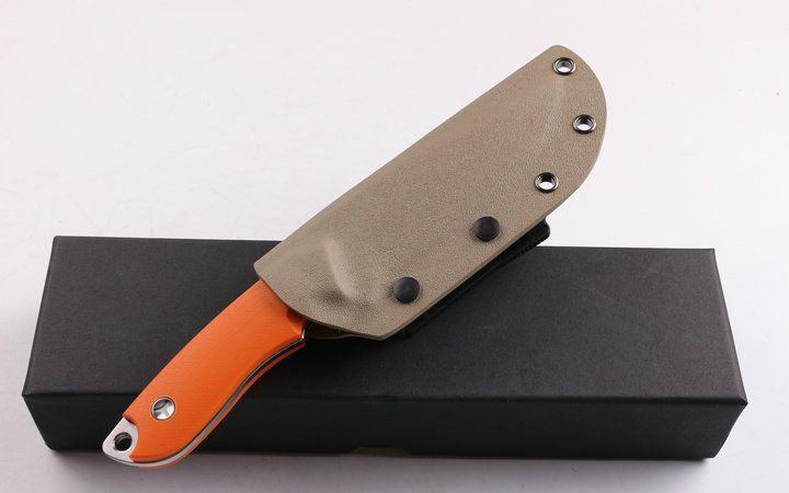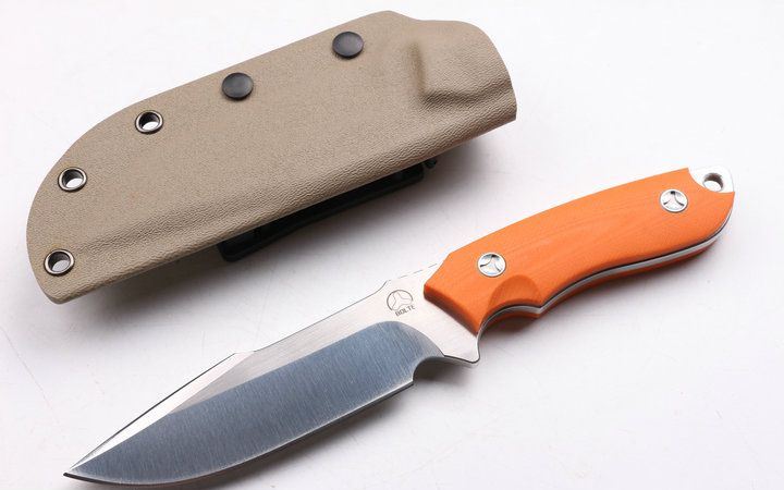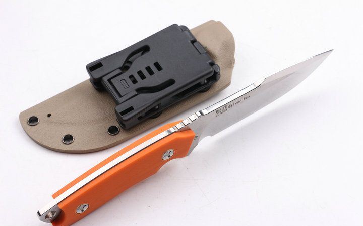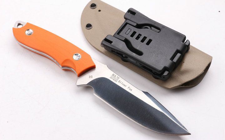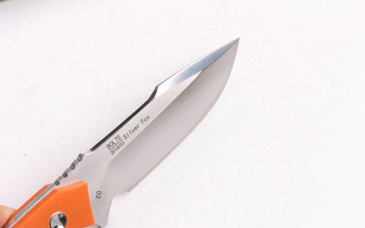 博尔特狐狸款直刀(橙色柄) 全 长:22.7cm 刃 长:11.8cm 柄 长:10.8cm 刃 宽:3.5cm(最宽处) 刃 厚:4.4mm 刃 材:D2(真空热处理) 硬 度:60-61HRC 刀 柄:CNC橙色G10 表 面:精细拉丝伴镜光 备 注:原厂礼品盒,优质真K鞘