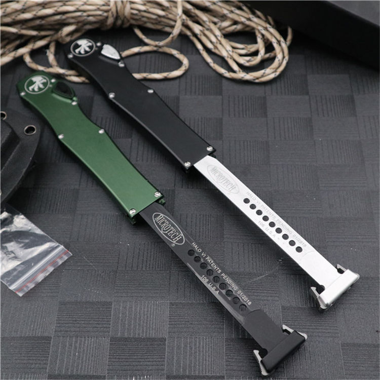Microtech在2010年MICROTECH更推出了HALO V系列弹簧刀,维持原有HALO的结实结构设计与操作方式,采用D-2工具刚作为刀身刚材