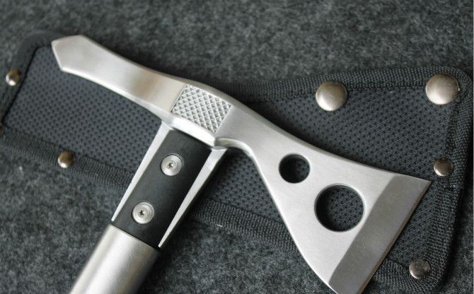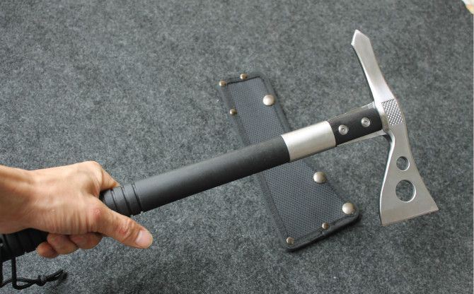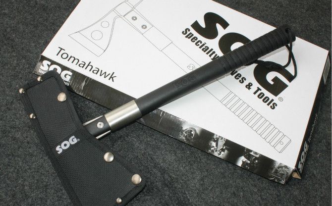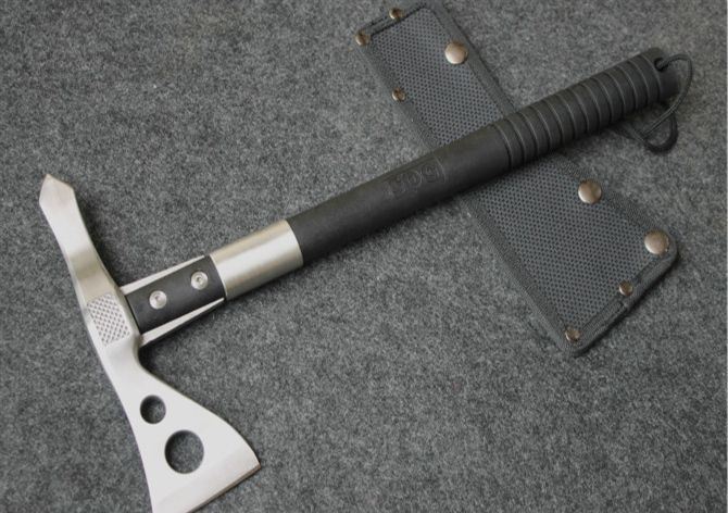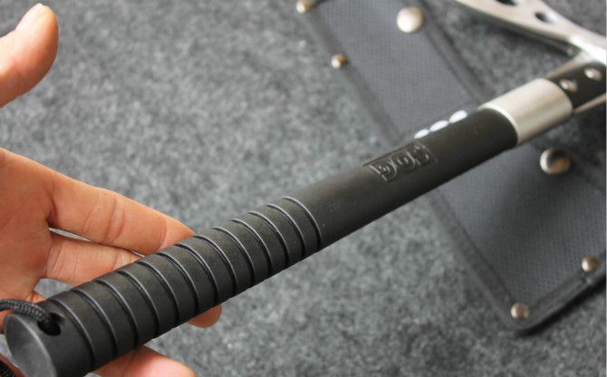 出口版SOG战斧砂光版 全长:39CM 刃长:19.8CM 柄长:37CM 刃厚:2.2CM 刃宽:6.5CM 刃材:精铸钢,全刃开锋 柄材:尼龙+玻璃纤维 硬度:56-57 净重:700克 毛重:1000克(含尼龙袋、盒子) 表面:砂光版 刀套:加厚尼龙(可绑在腰间)