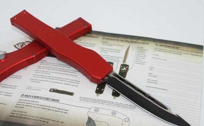 外贸版美国微技术 150-10 HALO V直跳红柄(黑刃尖头)