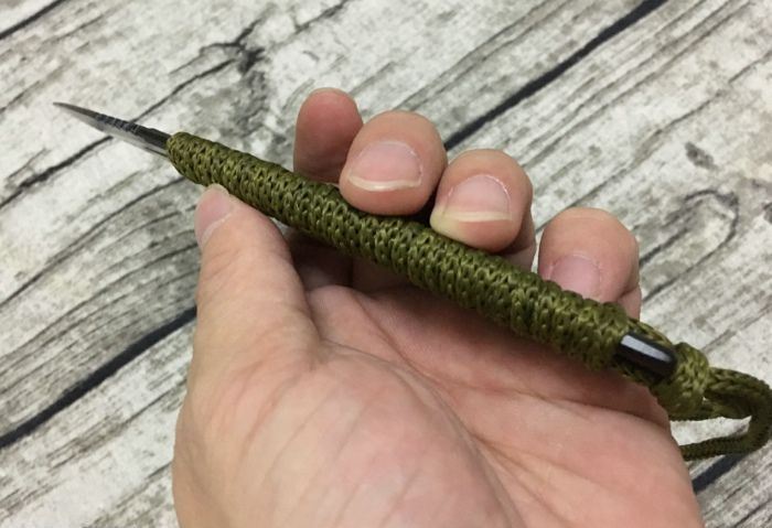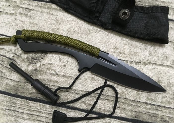 全 长:20.5cm 刃 长:9.5cm 柄 长:11cm 刃 宽:3.5cm(最宽处) 刃 厚:3.5mm 刃 材:8CR13 硬 度:58HRC 表 面:发黑 重 量:150克 备 注:带打火石