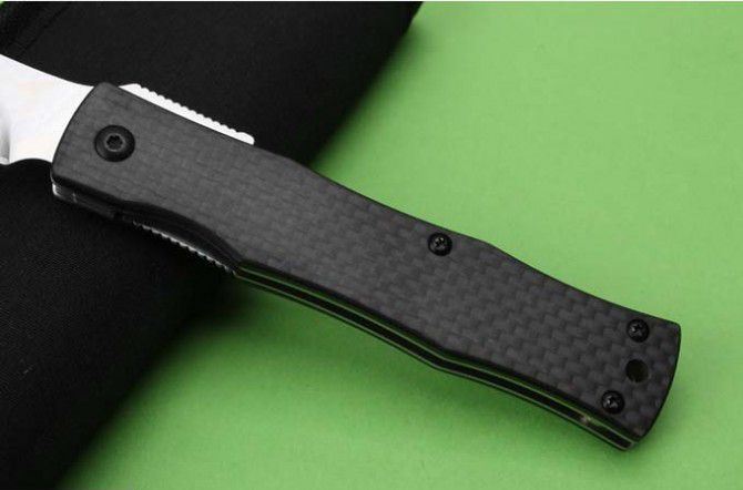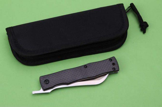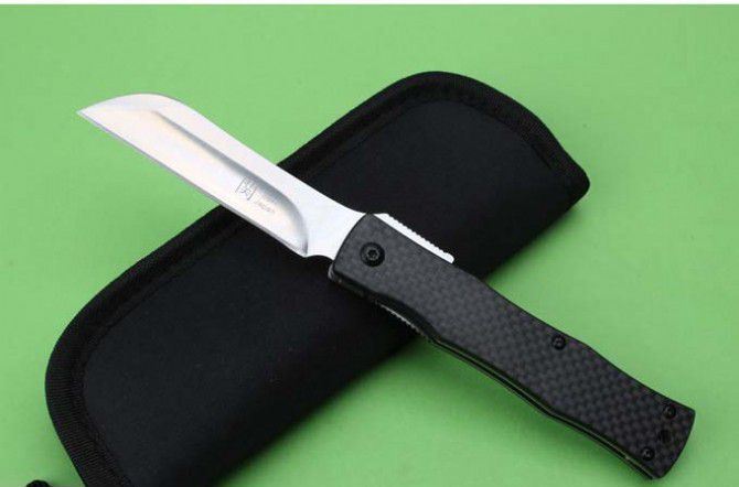 日本关氏肥后守032折刀 全 长:188mm 刃 长:80mm 柄 长:108mm 刃 宽:19mm 刃 厚:4.0mm 刃 材:D2(深冷处理) 重 量:129g (含包装物) 硬 度:58-60HRC 表 面:沙光 柄 材:手柄全TC4钛合金+碳纤 锁 型:线锁 其 他:黑色尼龙套