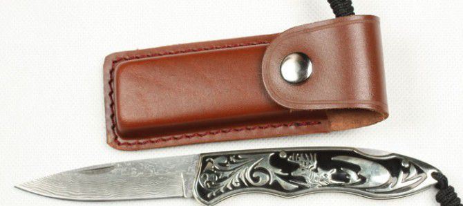 全 长: 19.7cm 刃 长: 8.5cm 刃 宽: 2.cm(最宽处) 闭 合: 11cm 刃 材: 进口大马士革钢 硬 度: 59 表 面: 大马士革钢特有的花纹原色 刃 厚: 0.29cm 柄 材: 白铜 重 量: 125克 锁 闭: 传统式制尾锁 其 他: 刃口锋利,配皮套 大马士革钢花纹和把手木纹及颜色各异,以实物为准