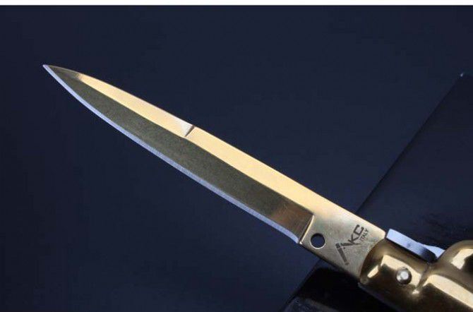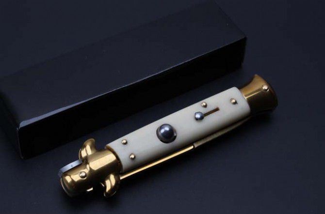 9寸AKC意大利跳刀黑手党象牙白柄(黄金枪刺刃)