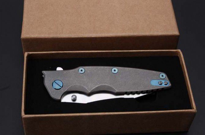 全长:208mm 刃长:89mm 柄长:119mm 刃宽:27mm 刃厚:4mm 刃材:M390 重量:145g 硬度:60HRC 表面:石洗 手柄材质:钛合金 结构:内置滚珠轴承 包装:礼盒