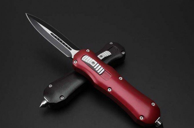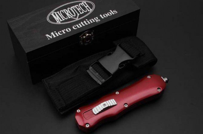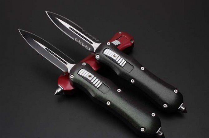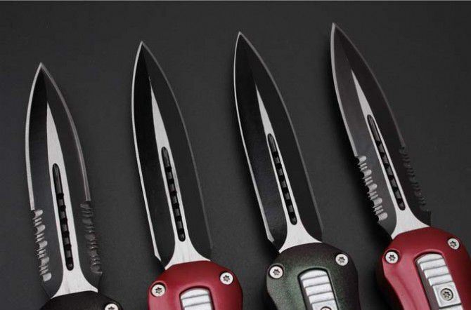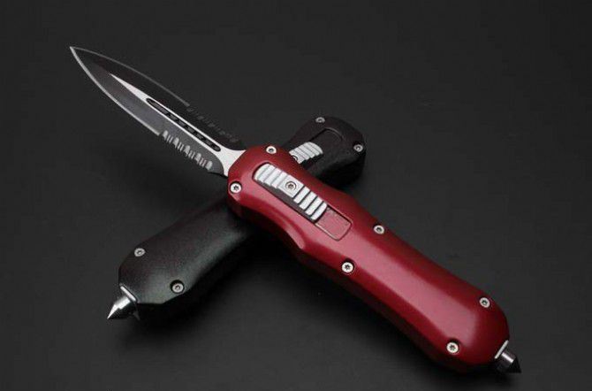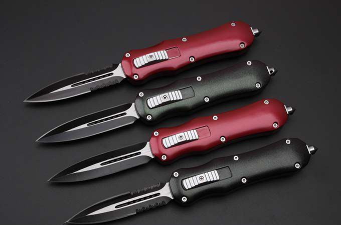 微技术B23伤齿龙弹跳刀 全 长: 21.8cm (含尾锥长度) 刃 长: 8.8cm 刃 厚: 2.8mm 刃 材: 440 硬 度: 57HRC 刀净重:247.0克 总重量: 462.0克(含包装物) 表 面: 黑白(刀刃) 柄 材: 锌铝合金 刀 鞘: 尼龙 锁 闭: 弹簧直出 备 注: 带背夹和玻璃撞针 颜 色: 红柄双锋全刃、红柄半齿、绿柄双锋全刃、绿柄双锋半齿