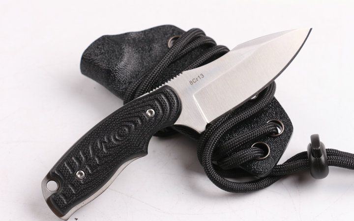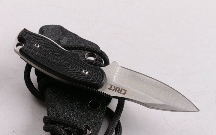 CRKT随身项绳防卫刀钢本色 全 长: 12.5cm 刃 长: 6.0cm 柄 长: 6.5cm 刃 厚: 3.2mm 刃 材: 8Cr13 硬 度: 58HRC 总 重: 150克(含包装物) 表 面: 手工砂光 柄 材: 一体钢+图案G10 刀 鞘: K鞘 其 它: 刀口锋利.手工制作.可以挂在勃子上,应急情况使用。