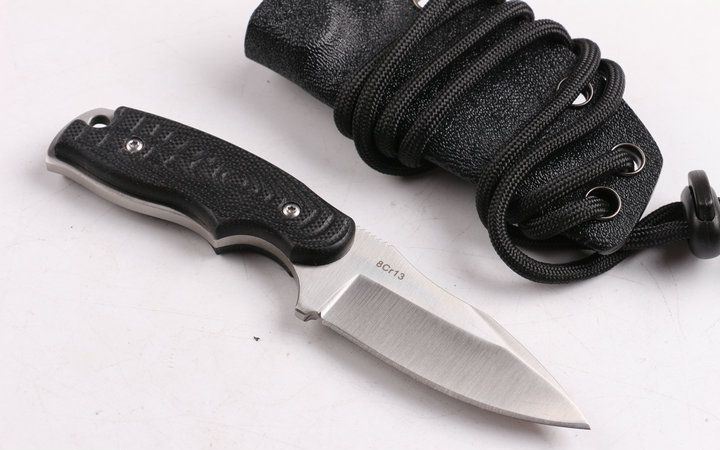 全 长: 12.5cm 刃 长: 6.0cm 柄 长: 6.5cm 刃 厚: 3.2mm 刃 材: 8Cr13 硬 度: 58HRC 总 重: 150克(含包装物) 表 面: 手工砂光 柄 材: 一体钢+图案G10 刀 鞘: K鞘