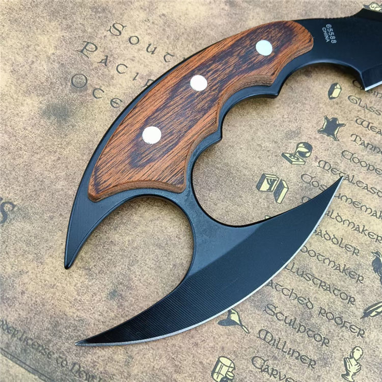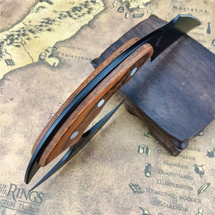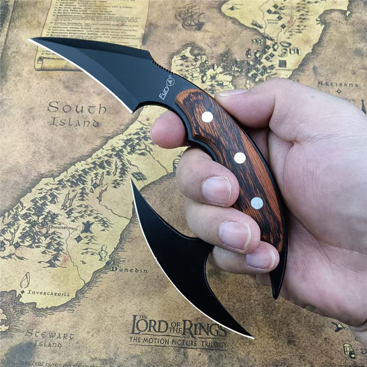 Fury7爪锥刀 全 长:18CM 锥 刃:7CM 摆 刃:9CM 刃 厚:0.4CM 刃材料:440 柄材料:可乐彩木 刀 鞘:尼龙 Fury幻想爪锥,极具创意的爪刀,既有实战意义,且有收藏价值