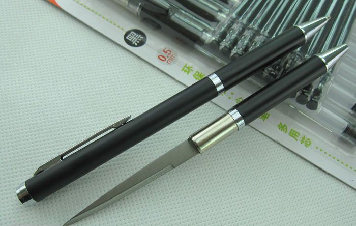 非常实用的时尚礼品:多功能刀笔. 功能一:小刀(防身) 功能二:开信刀 功能三:圆珠笔 全长:13.5CM 净重:17.4克 在拔出小刀时请小心! 笔杆材料:铝