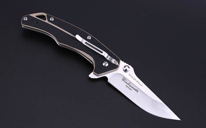 三刃木7076LUX战术折刀 【全长】16cm 【刃长】7cm 【刃宽】2.4cm 【刃厚】2.5mm 【硬度】59HRC+ 【表面】钢本色 【刃材】12C27 【柄长】9.4cm 【柄材】双色G10(带有背夹) 【重量】67克(含包装) 【包装】彩盒 【锁型】线锁