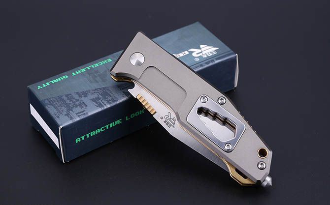 三刃木7046LTX战术折刀 【全长】16.3cm 【刃长】6.6cm 【刃宽】2.6cm 【刃厚】2.5mm 【刃材】8Cr14MoV 【表面】钢本色 【硬度】59HRC+ 【柄长】9.3cm 【柄材】8Cr14,灰色铝氧化+金钛(带有背夹) 【重量】93克(含包装) 【包装】彩盒
