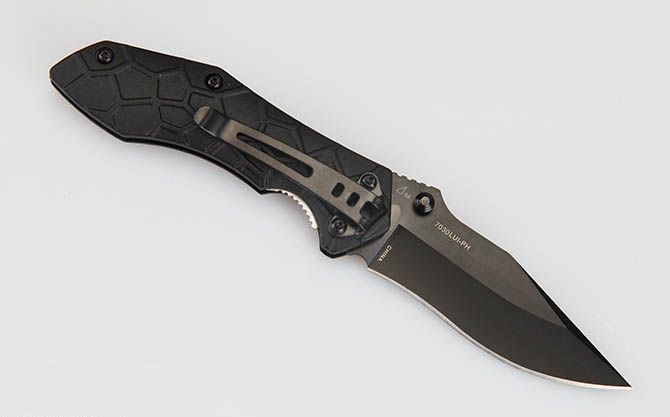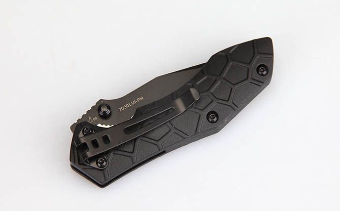 三刃木7030LUI战术折刀(黑版) 【全长】16.5cm 【刃长】7.3cm 【刃宽】2.8cm 【刃厚】2.5mm 【刃材】8Cr14MoV 【表面】发黑 【硬度】59HRC+ 【柄长】9.3cm 【柄材】3Cr13(带有背夹) 【重量】74克(含包装) 【包装】插卡包装 【锁型】线锁