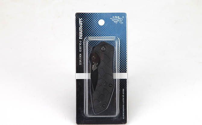 三刃木7030LUI战术折刀(黑版) 【全长】16.5cm 【刃长】7.3cm 【刃宽】2.8cm 【刃厚】2.5mm 【刃材】8Cr14MoV 【表面】发黑 【硬度】59HRC+ 【柄长】9.3cm 【柄材】3Cr13(带有背夹) 【重量】74克(含包装) 【包装】插卡包装