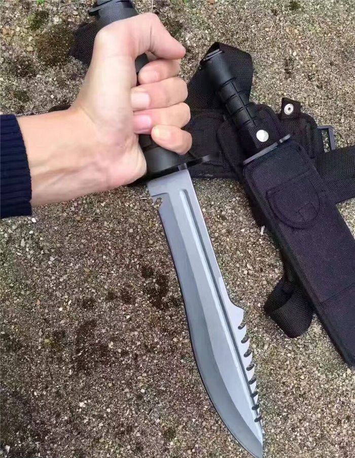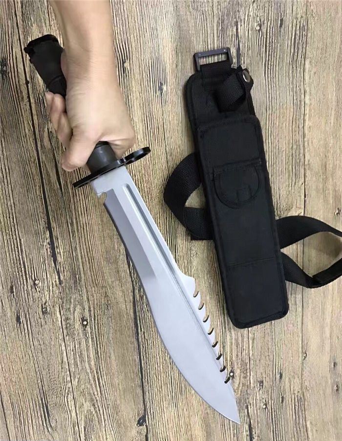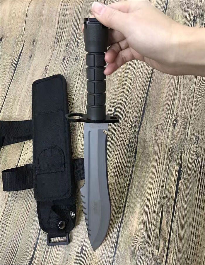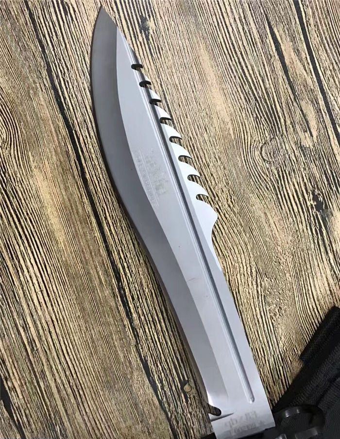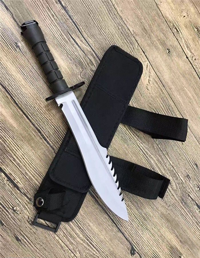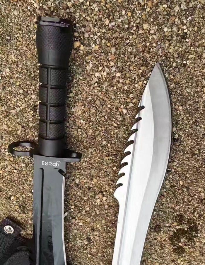 全 长:39.5CM 刃 长:26.6CM 柄 长:12.8CM 身 最大宽度:4.8CM 刀 厚:0.58CM 刃 面:喷砂 毛 重:884克(含刀套) 钢 材:7CR15钢 硬 度:57 刀 柄:绝缘强化塑胶