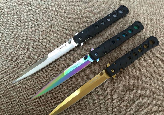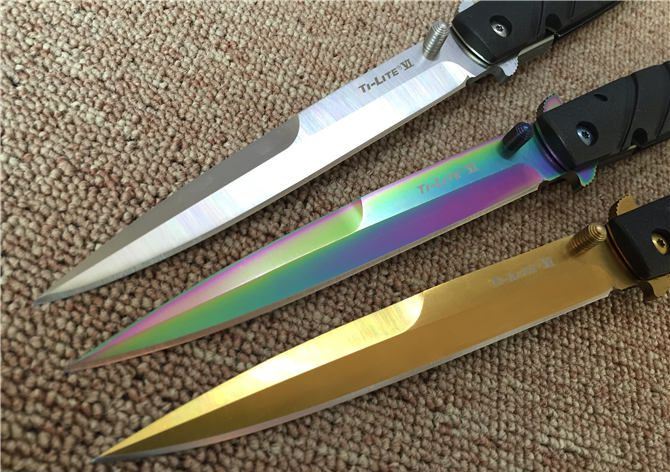 冷钢六英寸刃Ti-Lite 26sxp战术折刀 全长:33CM 刃长:15CM 刃厚:0.4CM 刃材料:440 柄材料:尼龙玻纤 柄长:17.8CM 重量:200g 颜色:钢本色、彩钛色、金色