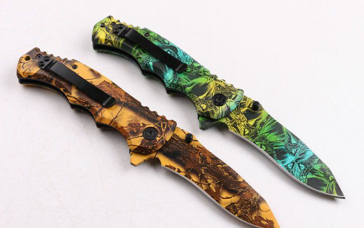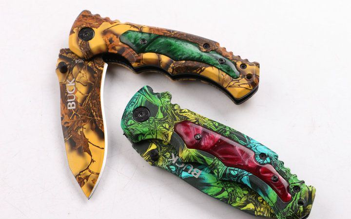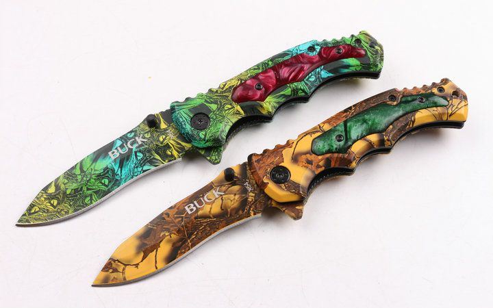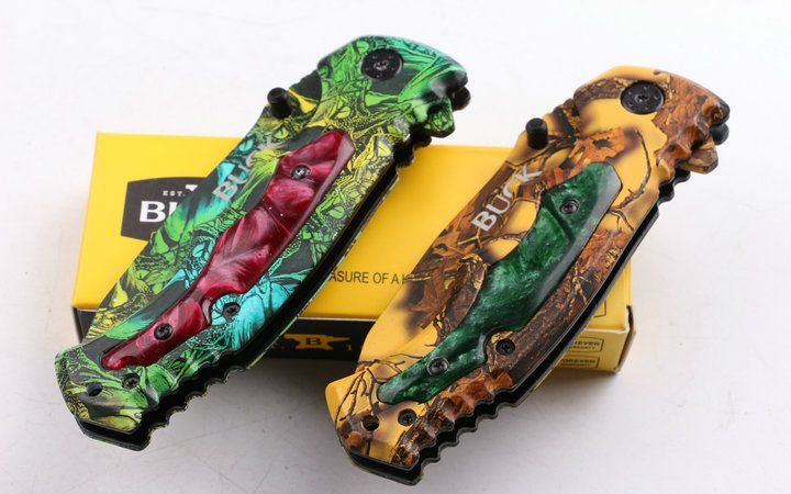 巴克X54快开折刀(迷彩) 全长:25.7 刃长:9.2 刃宽:2.5 刃厚:0.29 柄长: 11.8 刃材:440 硬度:57HRC 柄材:钢片+披覆 锁型:侧锁 总重量:150(含纸盒) 高档彩盒包装,迷彩绿+迷彩棕色两色任选