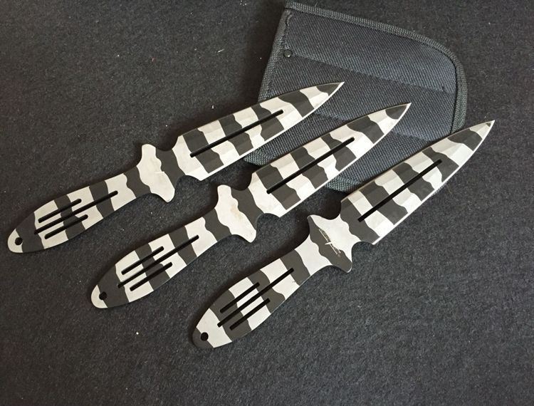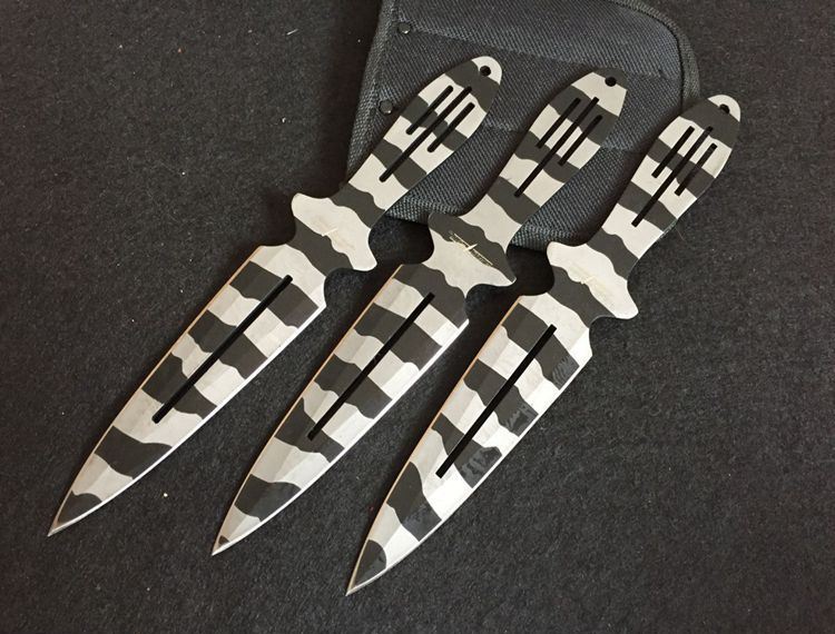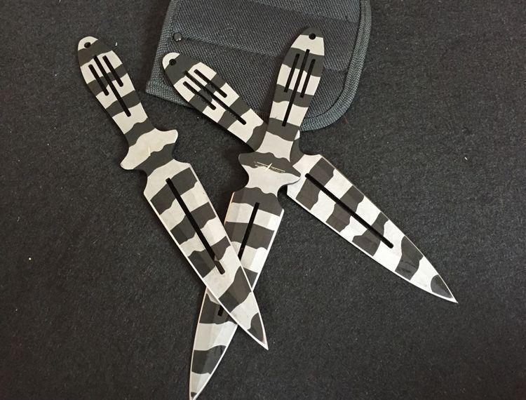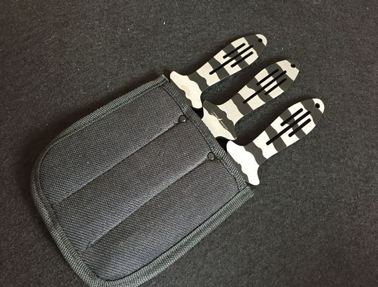 豹纹版蜘蛛飞镖 长度:22.7cm 最宽长:3.2cm 刀厚:3mm 表面:喷砂 其它:三支装 刀套:尼龙套