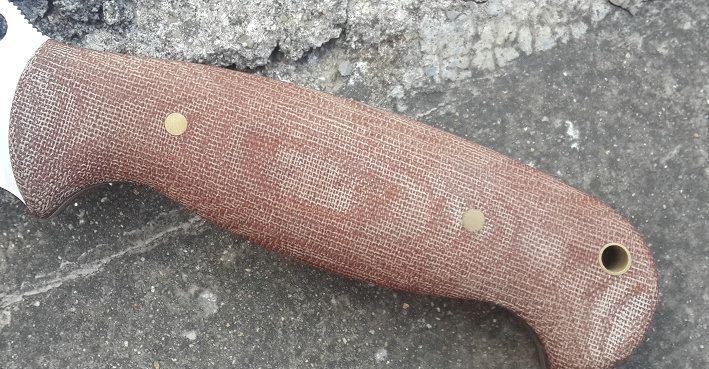 全长:24.8CM 柄长:13CM 刃长:11CM 刃宽:约35mm 刃厚:约4.2mm 刃材:美标D2 柄材:橙色G10和亚麻米卡塔 产品净重:约223g 产品硬度:59-60 表面处理:钢本