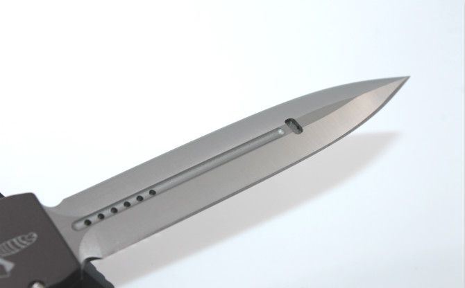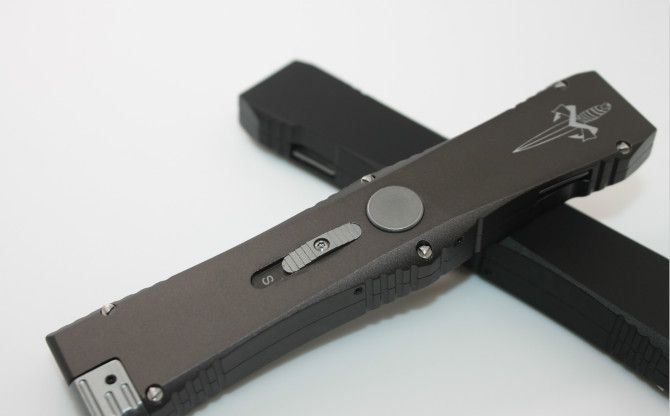 美国微技术晕光6号灰色柄跳刀 全长:21.5cm 刃长:9cm 刃宽:1.7cm 刃厚:0.32cm 刀刃材质:D2 柄材:铝合金 刀型:直跳 锁定类型:按钮锁 +保险 重量:138克(含包装) 附件:尼龙套和彩盒