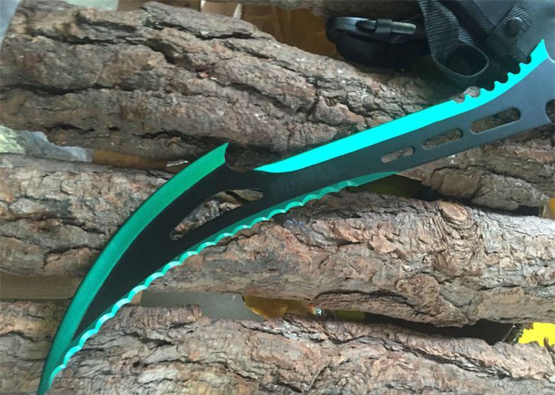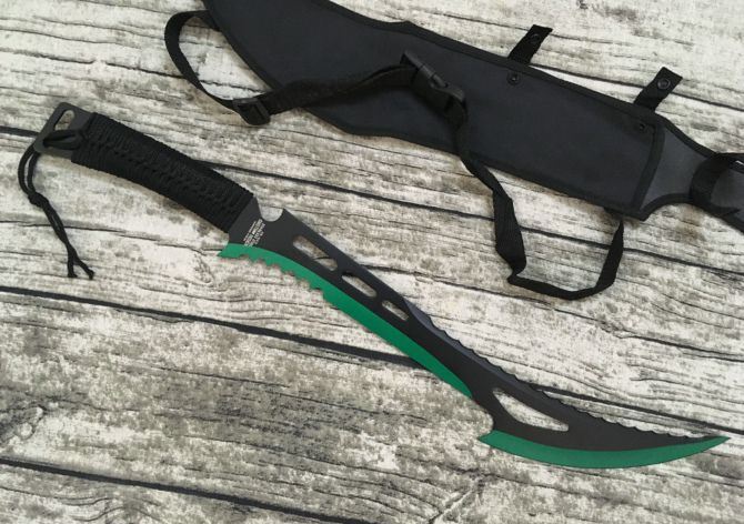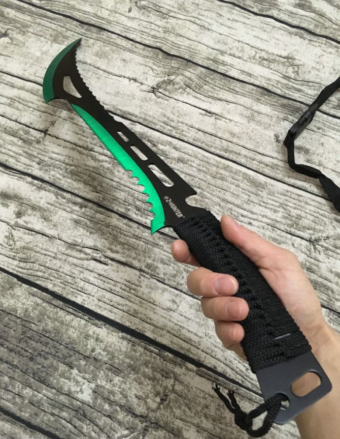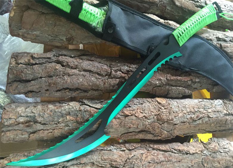 僵尸忍者战刀(绿刃) 全长:61CM 刃长:31.8CM 柄长:16.5CM 刃材:3铬13一体 刀鞘:尼龙