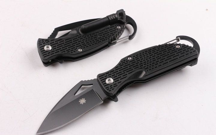 蜘蛛010匙扣折刀 全长:16.8 刃长:7 刃宽:3 刃厚:0.23 柄长: 9.8 刃材:440 硬度:57HRC 柄材:全钢+ABS 锁型:侧锁 总重量:100(含纸盒)