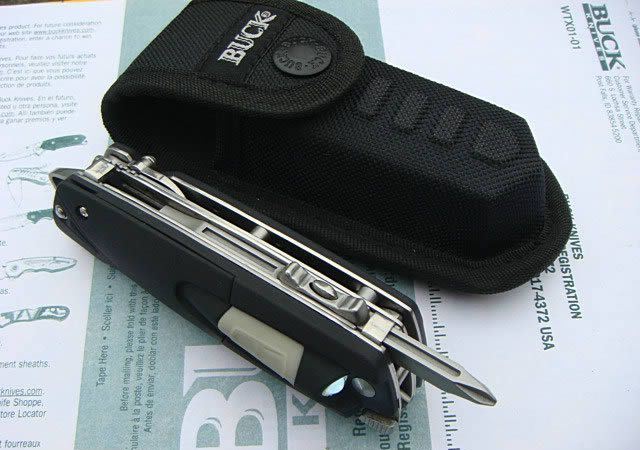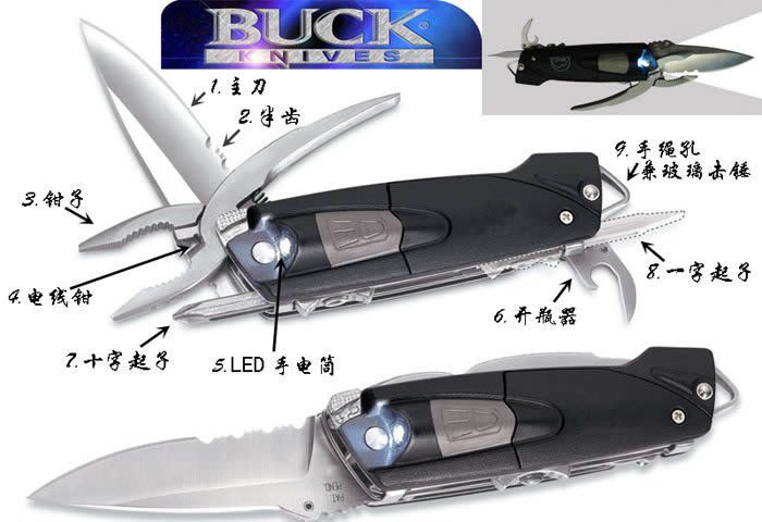 巴克731BKXB是一款很受欢迎的多功能刀具。刃材为420HC钢,420HC钢就是指420High carbon,含碳量比420J2高几倍,并且含钒BUCK的420HC实际使用起来保持度和硬度很不错,打磨也比较容易.这个 X-Tract 正是你想要的工具!包括一个LED 手电筒,提供您晚上外出或者比较昏暗的地方一样能正常使用!..此BUCK 的刀具区别于其他的更强大,因为它可单手完成操作所有功能. 然而橡胶处理的手柄增加了良好的手感和给钳子提供更好的出力点.刀和钳子所有功能都能方便的一手操作打开/上锁/解锁/关闭功能,非常安全和方便.使用了人性化的设计,给人带去实用性的同时,又给人以高档的感觉.是一把实惠而不可多得的好刀!这个BUCK 731 是世界有名的登山运动员Peter Whittaker 联合设计的 ,敬请各大刀友请勿错过