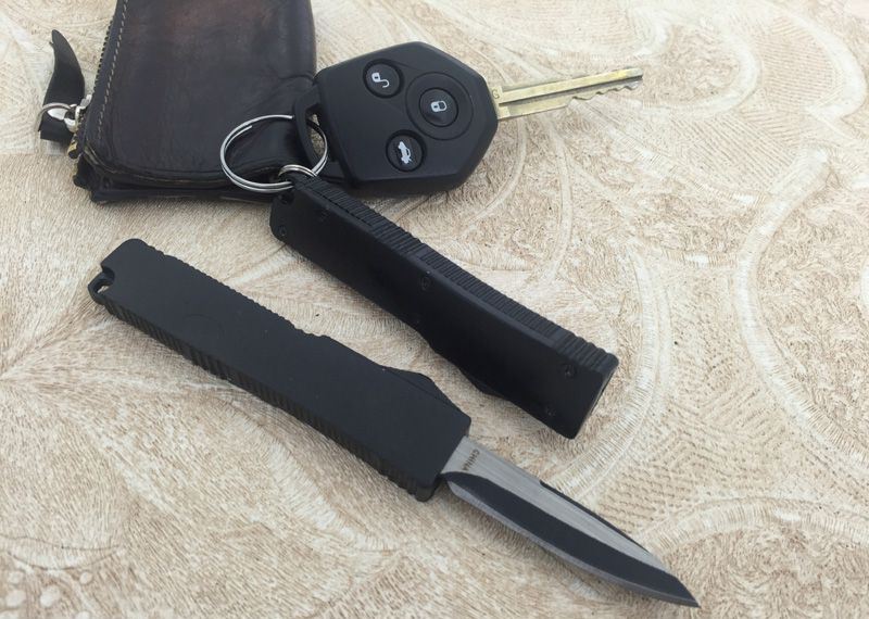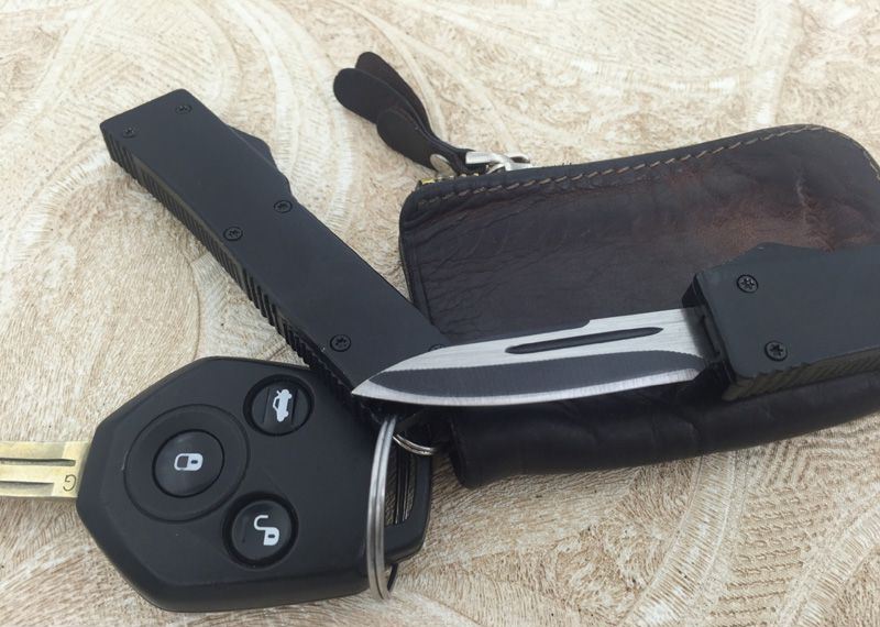 迷你Mini直跳刀航空铝柄黑色 展开:13CM 收起:8CM 柄材料:氧化航空T6铝 刀刃:440 重量:30克 Mini 款直跳刀,航空T6铝材柄,超小巧便携的直跳刀,尾端钥匙圈穿孔,可玩性强