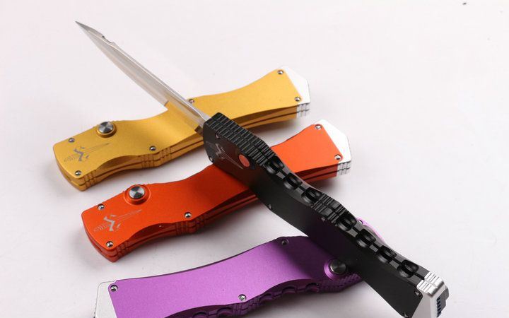 光炫4微技术直跳刀 全长:23.3CM 刃长:9.8CM 刃宽:1.8 CM 刃厚:0.31CM 刀刃材质:9CR18MOV 柄材:铝合金 刀型:直跳 锁定类型:按钮锁 重量:250克(含包装) 附件:Kydex鞘,说明书,彩盒,四色任选。